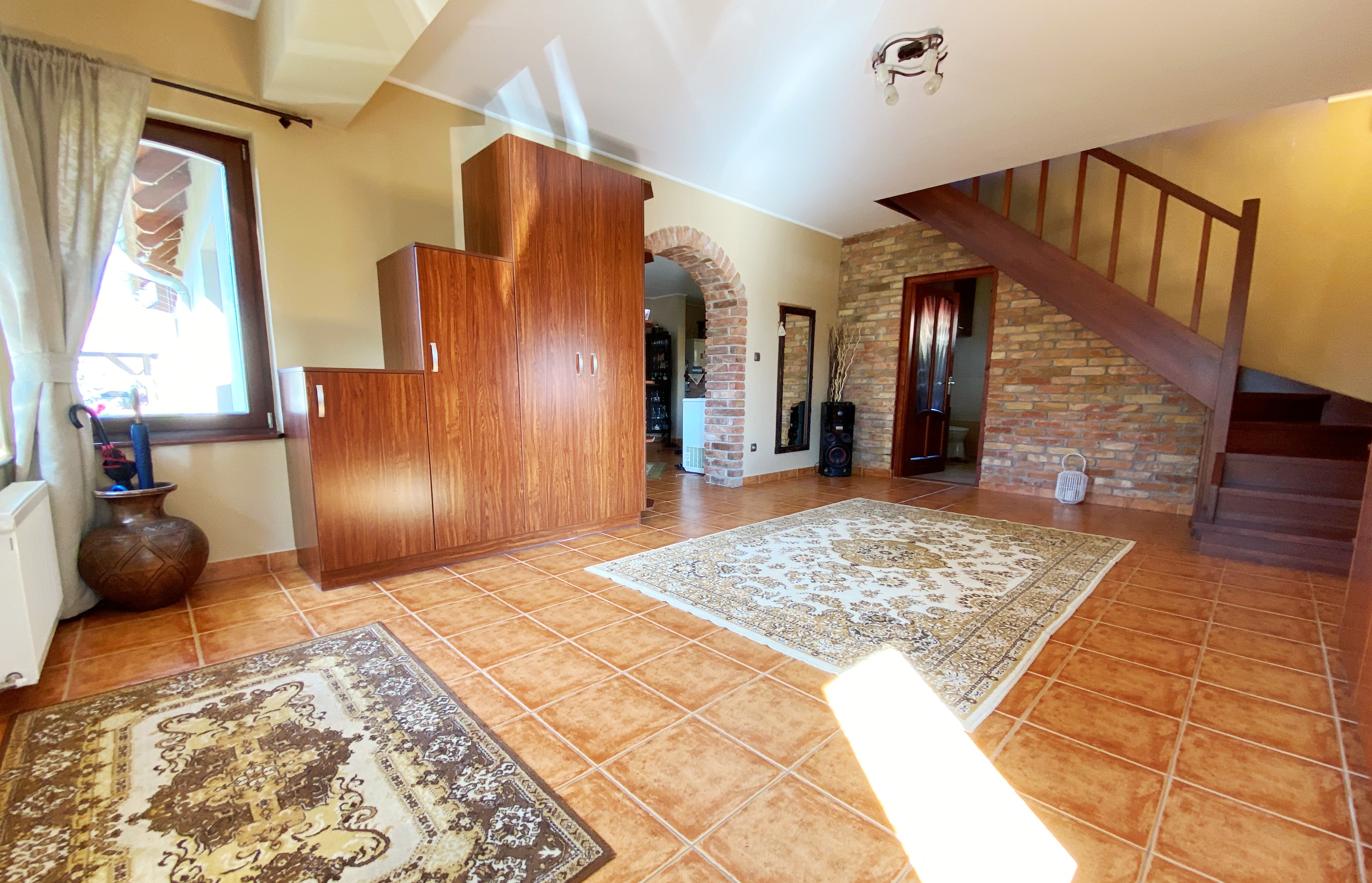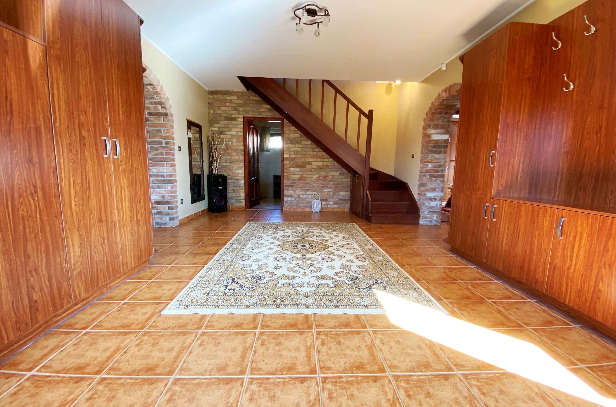 A téglaház 800nm-es telken épült 2008-ban, a ház alsó szintjén 2 különnyíló szoba, egy hatalmas fürdőszoba, tágas konyha- étkező, valamint egy szeparált, nagyméretű nappali, ami még jelenleg befejezés előtt áll, nem volt használatban, így a leendő tulajdonos igénye szerint kerül majd kialakításra.