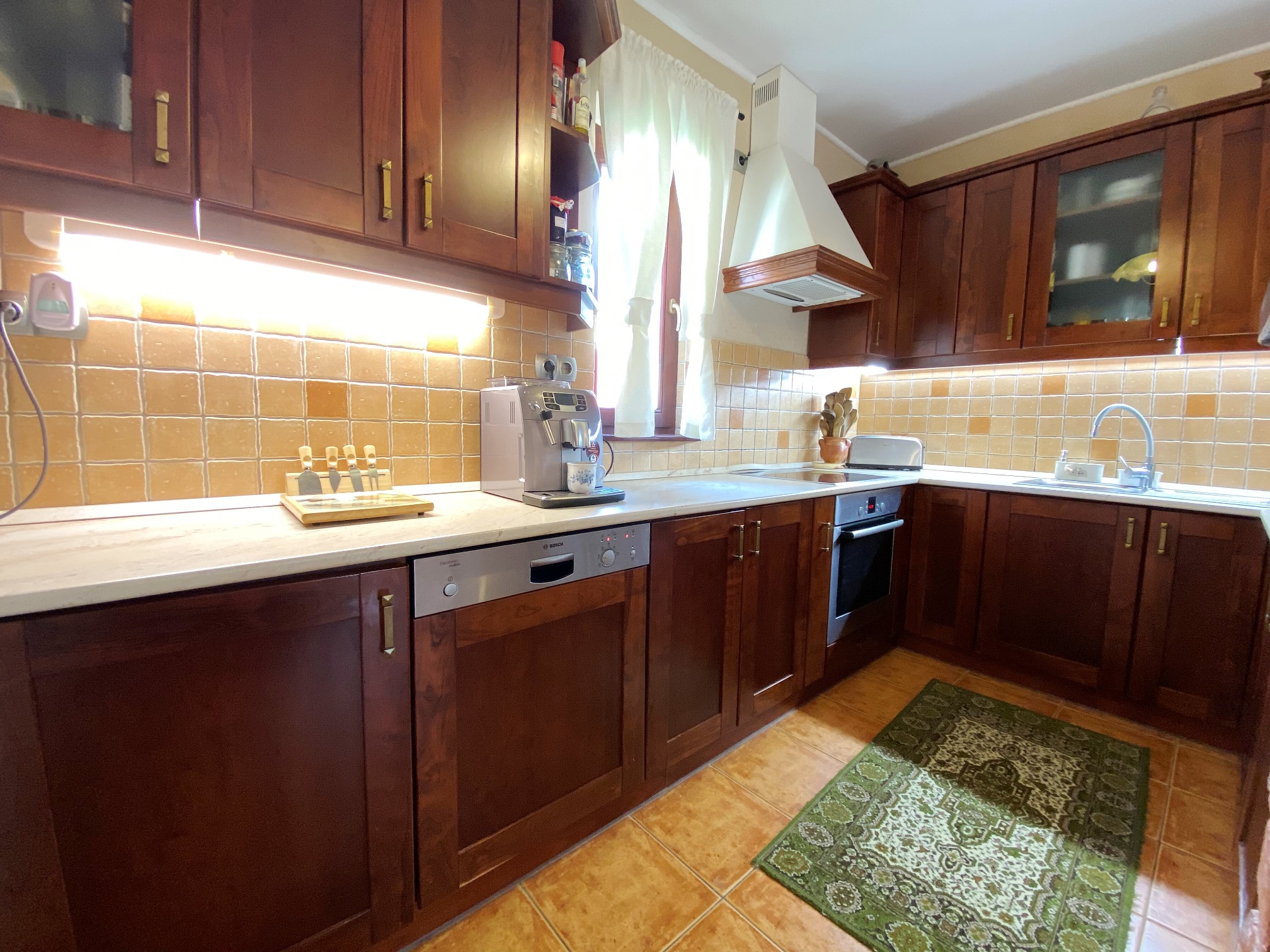 A beépített gépesített konyhabútor, sütővel, kerámia főzőlappal, páraelszívóval, mosogatógéppel és a beépített gardrób szekrények, mind a vételár részét képezik.